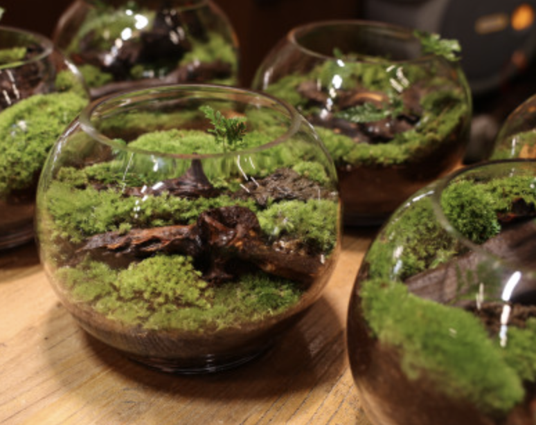 테라리움은 어항같은 유리 사육장안에 물 밖에서 사는 식물을 사육하는 것을 뜻합니다. 뚜껑을 열 수 있는 유리 용기에 흙을 담고 이끼나 돌, 나무를 키워서 잘 꾸민 테라리움을 멀리서 보면 마치 설악산, 아마존 등 대자연을 축소시켜놓은 것처럼 멋있어서 감탄하게 됩니다.