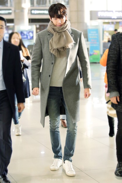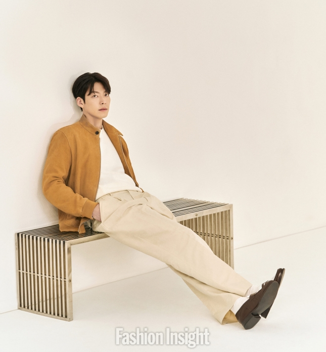 배우 김우빈의 사복패션입니다. 적당한 핏의 모노톤, 올드머니룩으로 봐도 무리가 없습니다.