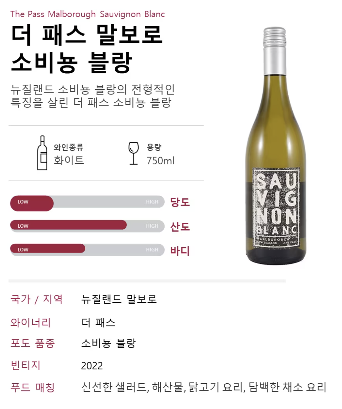 더 패스는 뉴질랜드의 대표 와인 산지인 말보로에서도 고품질 포도를 생산하는 와이라우와 아와테레 밸리 사이에 위치한 와이너리이다. 서늘하고 건조한 기후를 가진 와이라우 밸리와 좀 더 낮은 기온과 바람이 많이 부는 아와테레 밸리의 포도를 함께 사용하여 만든 와인이다.